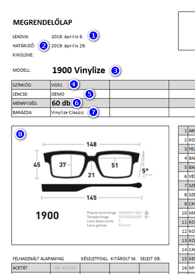 A megrendelőlapot a rendszer automatikusan felkínálja mentésre a gyártási rendelés feladása után. Ezen túl bármikor előállítható ha kiválasztunk egy rendelés sort az Új gyártási rendelés oldalról és rákattintunk a