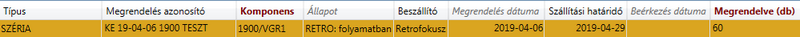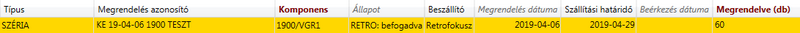 A művelet megerősítése után a sor barna háttérrel jelenik meg, és RETRO: folyamatban állapotba kerül: