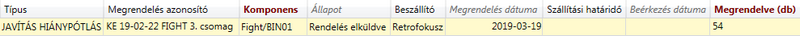 Az új megrendelések világos sárga háttérrel jelennek meg, állapotuk: Rendelés elküldve: