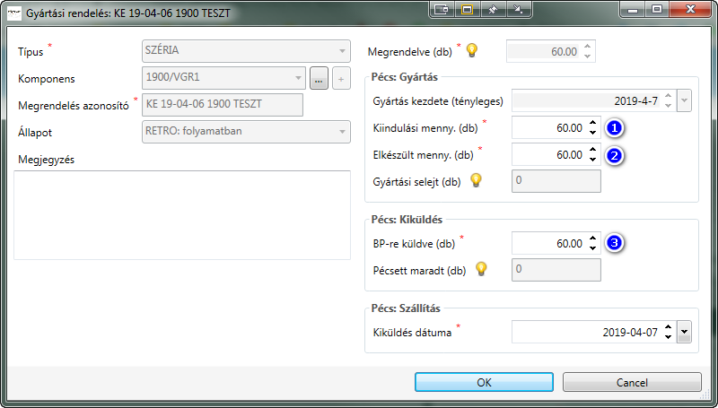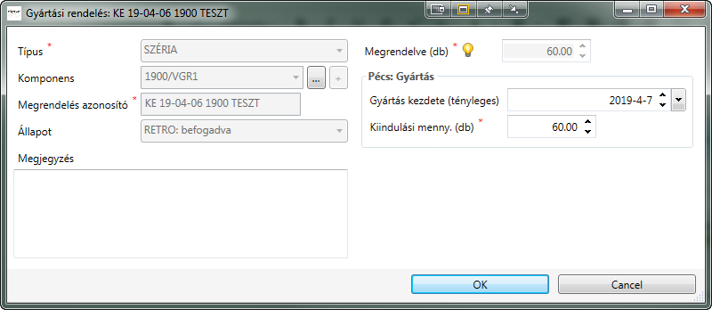 gombra! A felugró ablakban adjuk meg a gyártás tényleges kezdetét (alapértelmezetten a mai nap) és a kiindulási mennyiséget (becslét is jó):