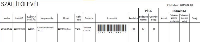 A megrendelés kiküldése funkció alkalmazása kötelező, mivel így tudod legenerálni az alkalmazásból a megrendeléshez kapcsolódó szállítólevelet! A szállítólevélen szerepel a megfelelő vonalkód, ami segít a Tiptonos kollégáknak a megrendelés beazonosításában.