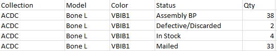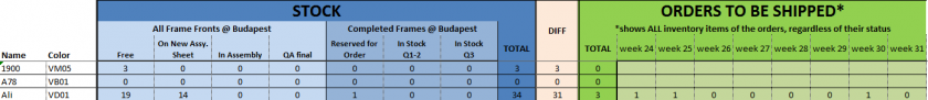 A jelentésben láthatjuk termékváltozatonként, hogy állapotonként hány darab van a cégnél, és a teljesítendő megrendelésekhez hány darabra lesz szükség a következő hetekben.